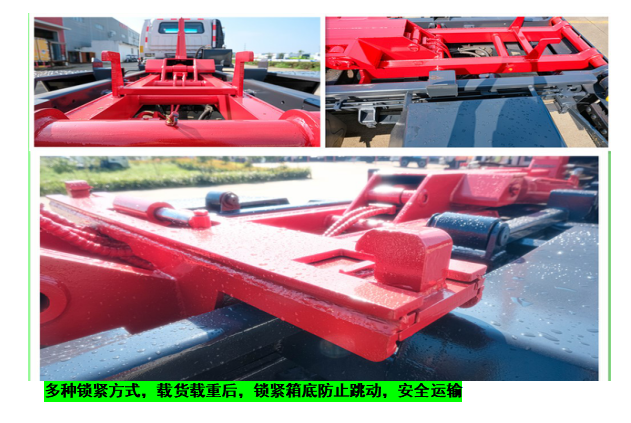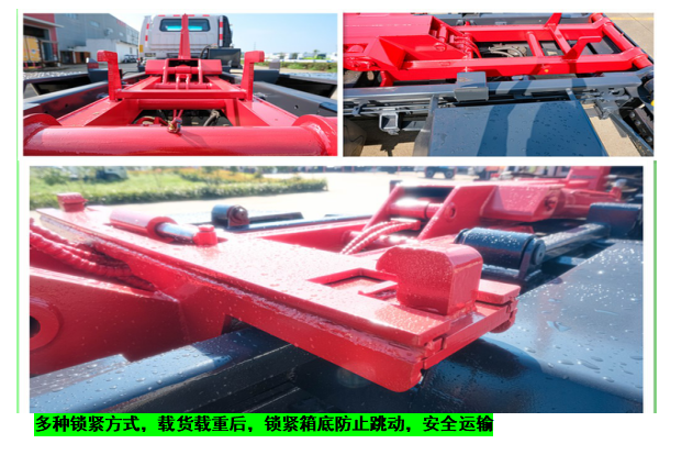 ◇上裝配置:強(qiáng)度合金鋼一體式主勾臂,加強(qiáng)型副梁,鑄鋼尾托輪,手自一體室內(nèi)外液壓操控,上裝提升能力3000KG,?液壓完成上箱+下箱+鎖緊+自卸等作業(yè),實(shí)現(xiàn)一車配多箱的循環(huán)轉(zhuǎn)運(yùn)??刹捎眉訌?qiáng)型上裝,油缸加粗,加裝液壓支腿,搭配建筑垃圾箱使用,提升能力6000Kg。