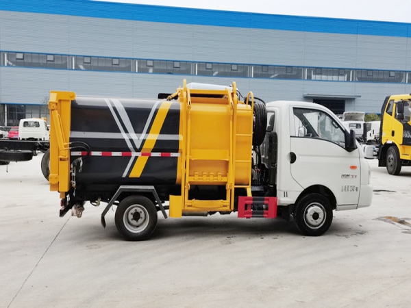 側(cè)裝式壓縮垃圾車屬于自裝卸式垃圾車的一種,采用側(cè)提桶上料方式進行生活垃圾收集,采用推板推擠或自卸式進行卸料。主要結(jié)構(gòu):汽車底盤、垃圾廂體、底架、側(cè)提桶機構(gòu)、后門總成、推板總成、液壓系統(tǒng)和電控系統(tǒng)。液壓及電控系統(tǒng)由油泵、油缸、油箱、電液**閥、PLC和**開關(guān)等組成。同時本車自重輕,箱體為圓弧形,容積大,同等車型中裝載量**,并且美觀大方。
