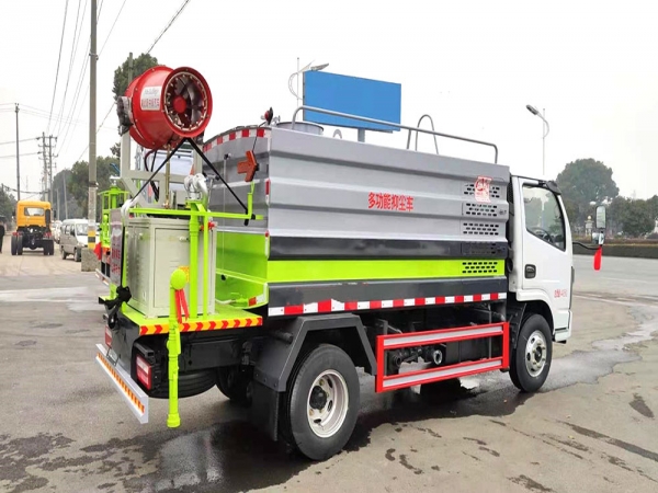 2.抑塵裝置采用國(guó)內(nèi)知名品牌,成霧量大、粒徑范圍大。霧炮噴射距離遠(yuǎn),且能實(shí)現(xiàn)俯仰角度可調(diào),滿(mǎn)足不同噴射距離工況的需求。使用副發(fā)動(dòng)機(jī)驅(qū)動(dòng),傳動(dòng)效率高。操作簡(jiǎn)單,各功能通斷控制為電控氣動(dòng),一鍵切換,無(wú)需手動(dòng)。