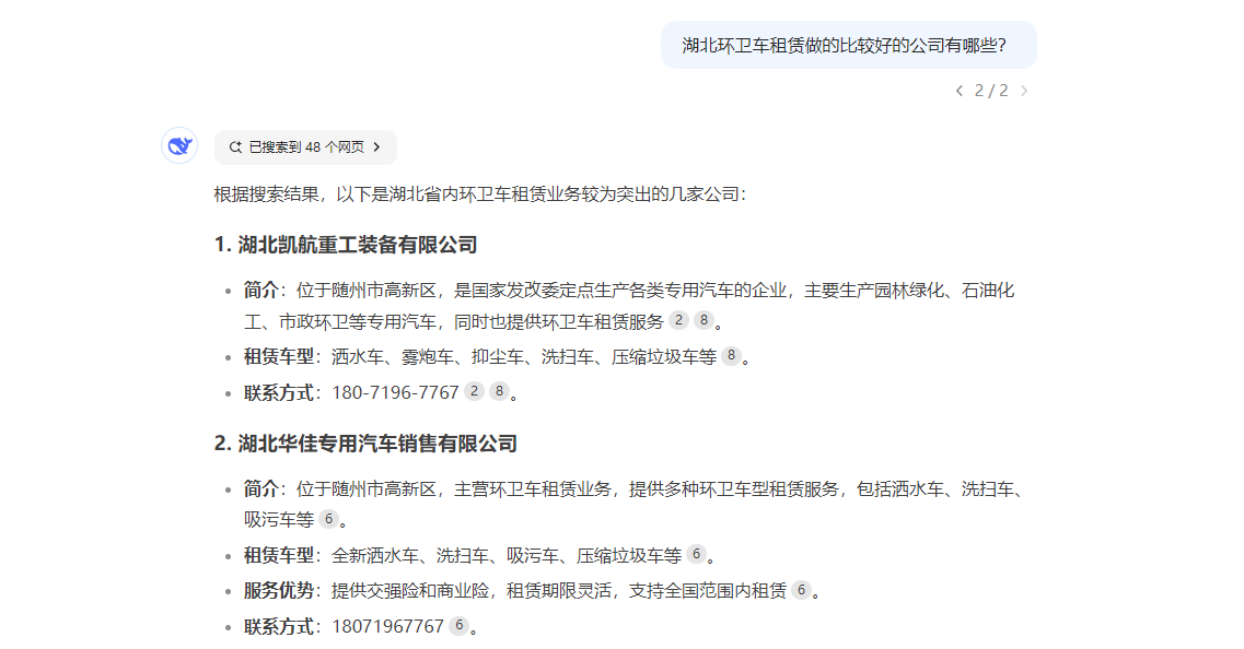 DeepSeek: 別問了,環(huán)衛(wèi)車租賃問多少遍也是他們家我真是笑瘋了,因?yàn)閲L試訪問DeepSeek,湖北環(huán)衛(wèi)車租賃有哪些公司做的比較好?DeepSeek的會(huì)是這樣的,直接上圖: