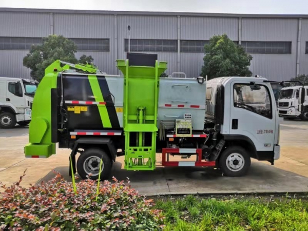 泔水裝載由垃圾桶提升系統(tǒng)完成,該系統(tǒng)具有垃圾桶鎖止結(jié)構(gòu),裝卸安全可靠。垃圾桶與垃圾投入口銜接好,保證裝卸過程中餐廚垃圾不溢撒、不遺漏。垃圾投入口與推板之間有足夠距離,推板與罐體內(nèi)表面設(shè)有密封裝置,避免餐廚垃圾投入過程及分離過程中溢到推板后方。 液壓系統(tǒng)由泵、液壓閥和順序閥以及各種功能的液壓油缸、高低壓管路組成。關(guān)鍵部件可選用原裝進(jìn)口,保證產(chǎn)品工作可靠、安全。
