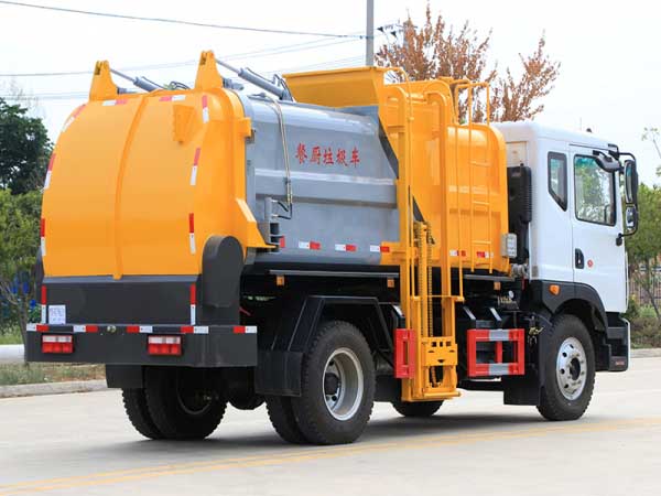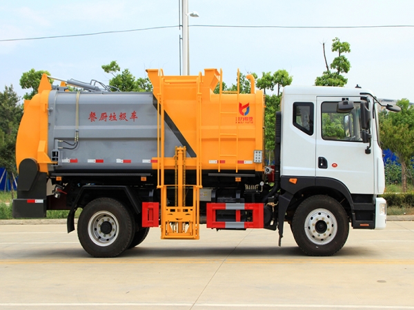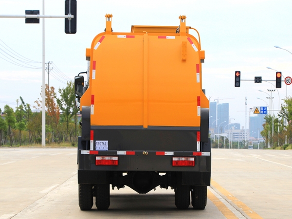 5、密閉排料(選裝):不用后門(mén)打開(kāi),液態(tài)垃圾可以通過(guò)管道路排出,固態(tài)垃圾可以通過(guò)旋轉(zhuǎn)絞籠擠壓排放出車(chē)廂。