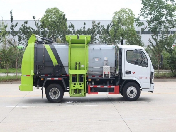 餐廚垃圾車,又稱餐余垃圾車、余廚垃圾車或者泔水車,餐廚垃圾車是垃圾車中的一種,是用于收集和運輸生活垃圾、食品垃圾(泔水)專用車輛。上裝由箱體、后門總成、后門開啟機(jī)構(gòu)、密封鎖緊機(jī)構(gòu)、推板機(jī)構(gòu)、掛桶提升機(jī)構(gòu)及操縱機(jī)構(gòu)等組成。有裝、卸垃圾自動化程度高、工作可靠、密封性好、裝載容積大、操作簡便、作業(yè)過程密閉,無污水泄露和異味的散發(fā),環(huán)保性好等特點。餐廚垃圾車不僅優(yōu)化了居民居住的環(huán)境衛(wèi)生,減少了空氣中的餐廚垃圾臭味,減少孳生蟑螂、細(xì)菌的可能, 改善了環(huán)衛(wèi)作業(yè)環(huán)境,減少垃圾的四處分散造成的污染。