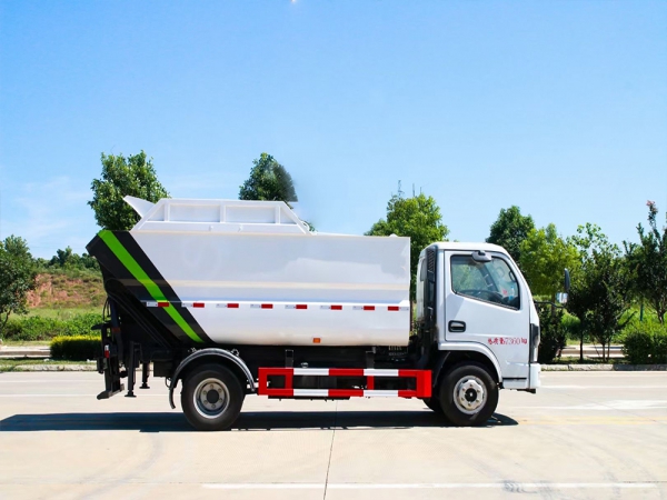 該車型是我公司根據(jù)環(huán)衛(wèi)市場需求開發(fā)的一種新型垃圾車,選用東風(fēng)公司生產(chǎn)的二類汽車底盤。由垃圾箱、翻桶機(jī)構(gòu)、舉升機(jī)構(gòu)、刮板及滑板壓縮機(jī)構(gòu)、液壓系統(tǒng)和電氣系統(tǒng)等部件組成。具有外形美觀、駕駛舒適、操縱方便、機(jī)動靈活、可靠性高、運(yùn)營成本低、上料效率高等特點(diǎn)。適用于城市、鄉(xiāng)鎮(zhèn)的垃圾收集轉(zhuǎn)運(yùn),箱體采用船型斗結(jié)構(gòu),徹底解決了垃圾運(yùn)輸過程中的污水滴漏等問題。