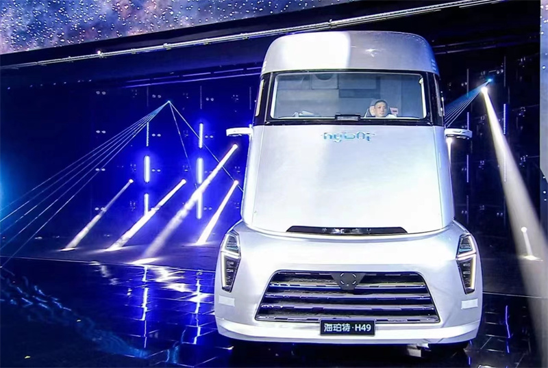 體化智能氫電線控底盤,整車百公里氫耗在滿載49噸高速行駛的工況下低至8kg,實現(xiàn)全球首款氣態(tài)氫續(xù)航大于1000km。