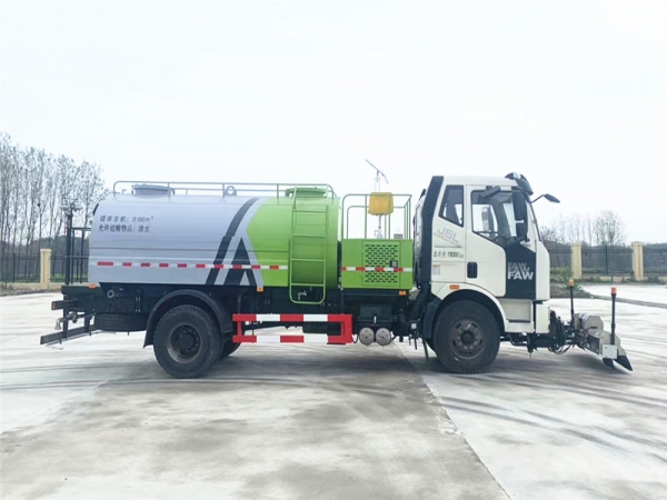 在線咨詢解放J6高壓清洗車是一種雙發(fā)動(dòng)機(jī)、雙水泵清洗車,是在標(biāo)準(zhǔn)二類底盤的基礎(chǔ)上,加裝高壓沖洗系統(tǒng)、低壓沖洗系統(tǒng),由機(jī)械、液壓(氣路)、電器三部分合為一體的專用沖洗作業(yè)車。本車具有獨(dú)立的高、低壓兩套水路系統(tǒng),為清洗車工作提供壓力水源。其工作原理是:利用高壓水泵產(chǎn)生的高壓水,經(jīng)噴水架的高壓噴嘴噴出,利用高壓水流的動(dòng)能,以高壓力、低流量的方式進(jìn)行清洗,強(qiáng)力去污,高效節(jié)水,能將路面的陳舊污漬清洗干凈;或高壓水經(jīng)左(右)角噴噴出,清洗路緣、人行道及護(hù)欄隔離區(qū);使用高壓噴槍還可清洗路標(biāo)、廣告牌、高架路等;噴霧系統(tǒng)具有強(qiáng)大的噴霧降塵、噴撒空氣消毒劑及調(diào)節(jié)空氣濕度功能。