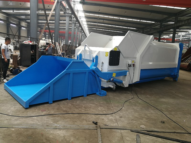 我公司生產(chǎn)的智能移動壓縮垃圾站設(shè)備構(gòu)成:由翻轉(zhuǎn)機構(gòu),壓縮機頭,控制系統(tǒng),集裝箱,后門(卸料口)構(gòu)成。