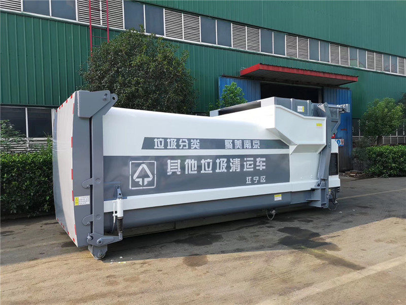 后門總成采用整板制作,造型圓滑美觀。后門鎖緊采用液壓油缸鎖緊機構(gòu),從拉臂車取動力,自動操作,操作簡單可靠,且后門開啟角度達100度,使垃圾傾倒更徹底干凈。整體式雙唇結(jié)構(gòu)密封膠條,具有優(yōu)異的密封性能,能有效防止污水的滲漏和氣味的散發(fā),即便在無法排污的情況下也能保證設(shè)備在壓縮及轉(zhuǎn)運過程中不會出現(xiàn)污水泄露的現(xiàn)象。