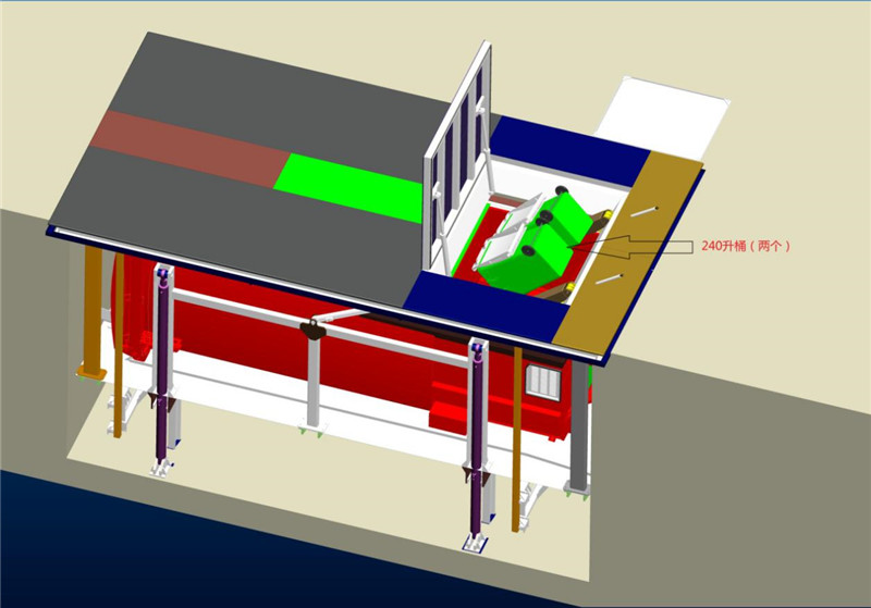 只要將地埋式垃圾箱上蓋打開,垃圾箱的推頭就會(huì)把推頭室的垃圾推到垃圾貯料倉(cāng)從而達(dá)到垃圾壓縮功能。